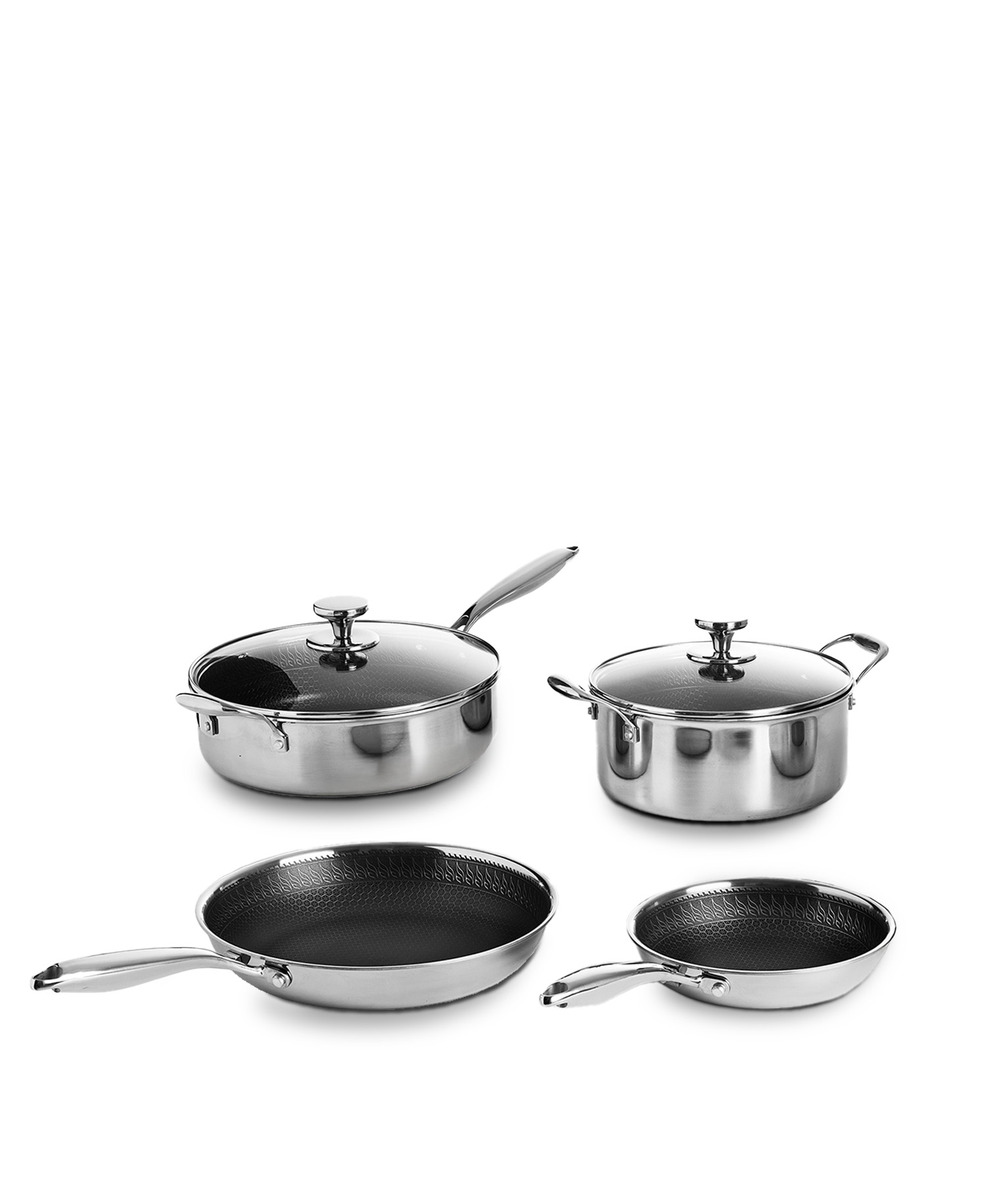 Alla delar i setet har en slitstark honeycomb-struktur invändigt som skapar en non-stick-yta av högsta hållbarhet. Den keramiska beläggningen gör att maten släpper lätt och att rengöringen går snabbt och enkelt – utan att kompromissa med hälsan.