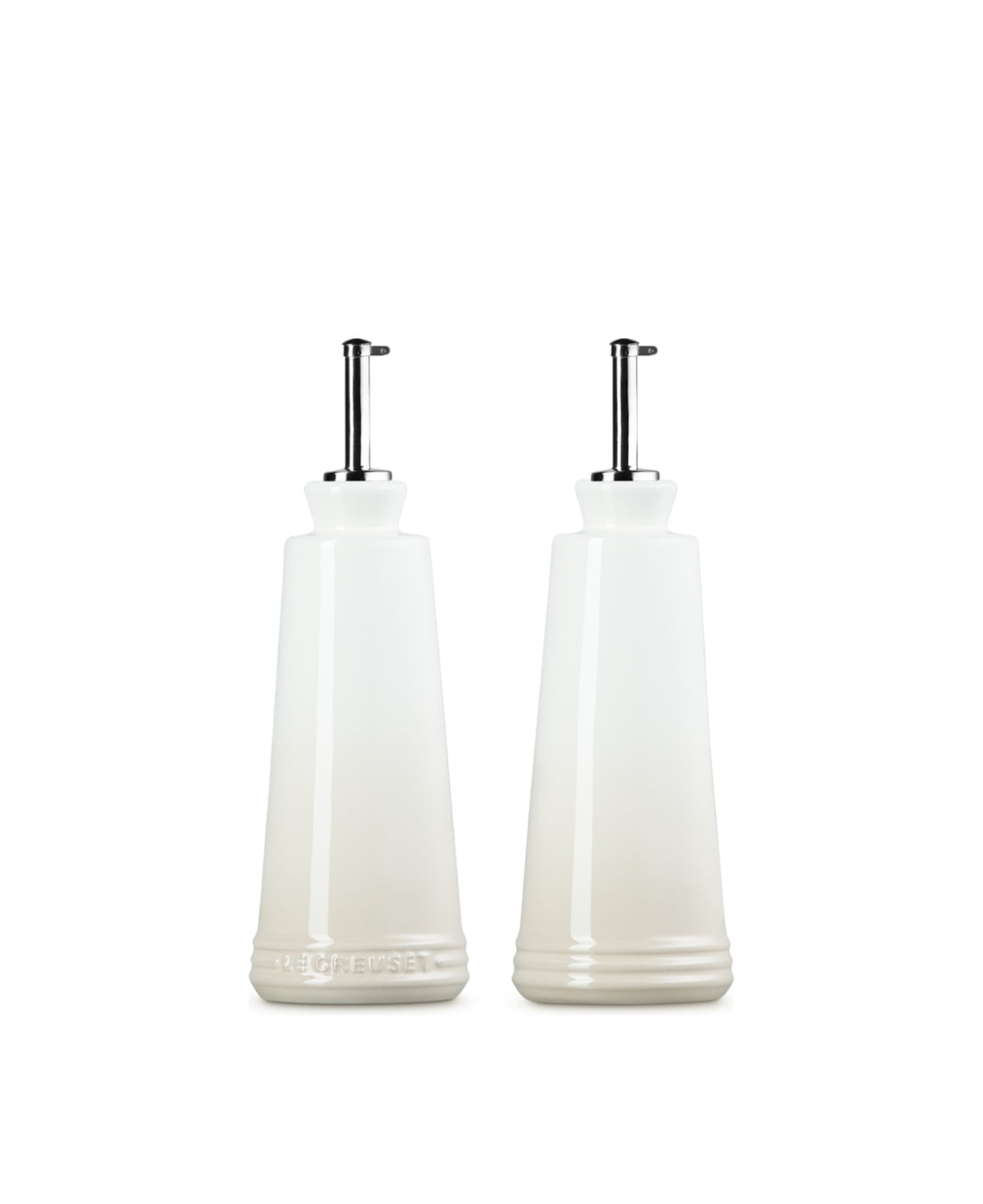 Vårt moderna stengods är designat för daglig användning och är lätt att använda oavsett om du kastar ihop en sallad eller häller olja i en het panna. Setet innehåller en karaff med Le Creuset-logotypen och en utan, så att du enkelt kan se skillnad. Den användarvänliga hällpipen i rostfritt stål gör även serveringen enkel.